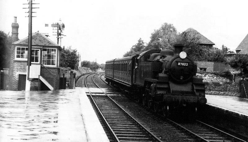 An Exeter bound train with Class 3MT No. 82025 approaching Topsham.
