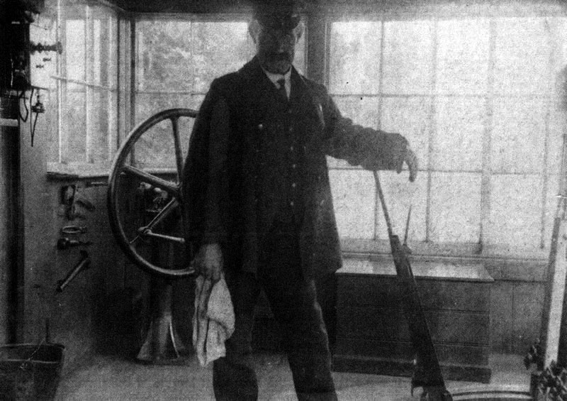 Mr Jack Richards, Signalman, in Topsham Signal Box in the 1930's.