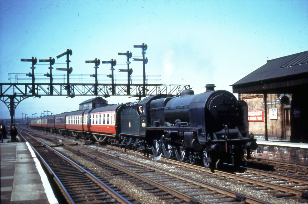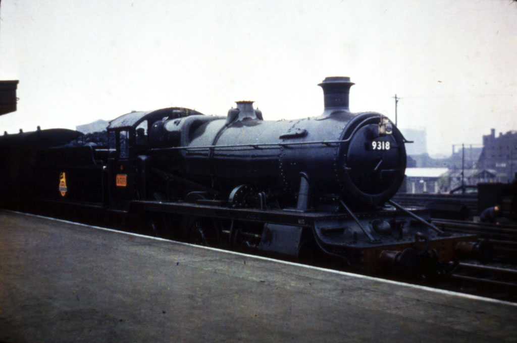 4942 Maindy Hall awaits departure from Bristol Temple Meads Platform 7 with an up express - 1H20 SO 0740 St. Austell - Birmingham (Moor Street). Though that's only if the head code is correct and I happen to have the right WTT in front of me (1961). The locomotive was rescued from Barry Scrapyard and will one day become 2999 Lady of Legend.