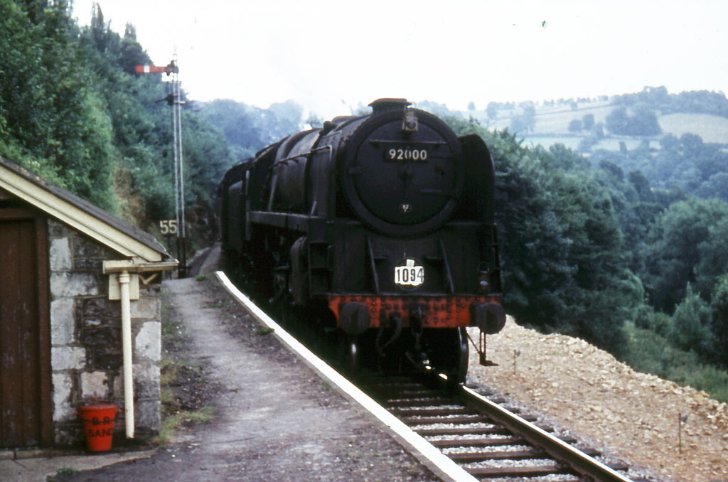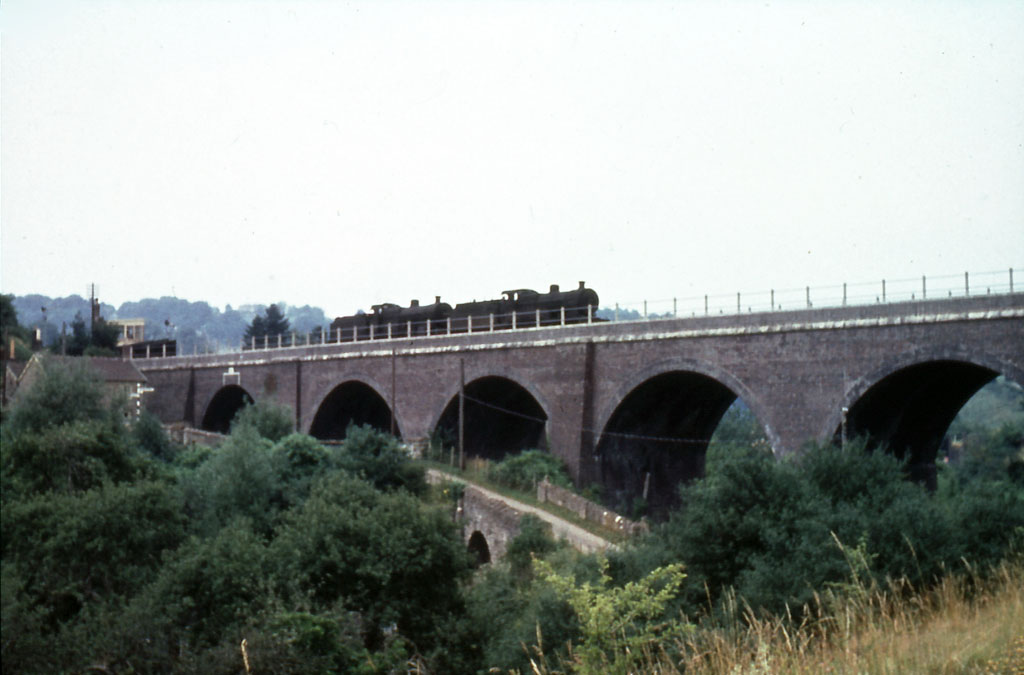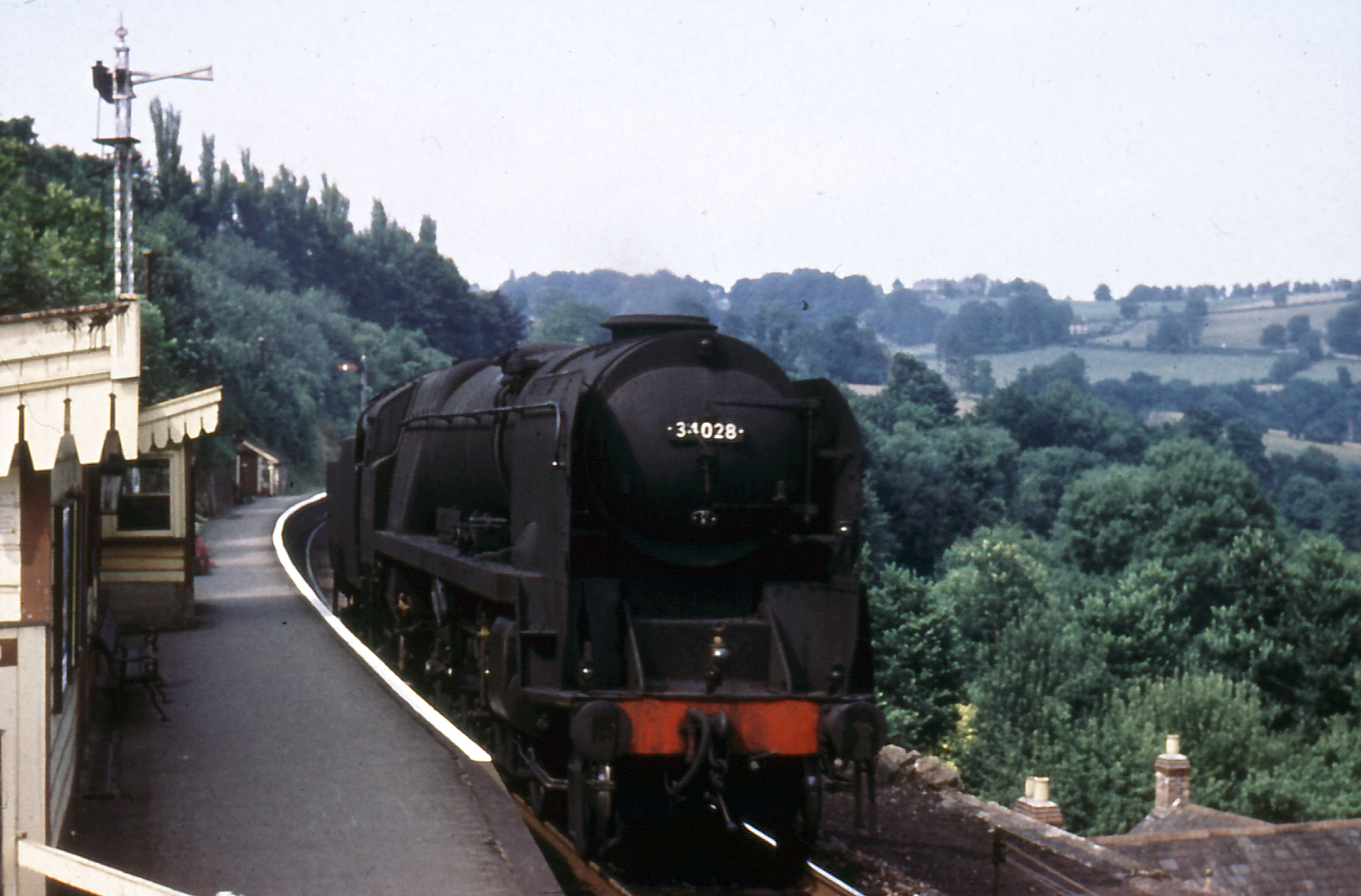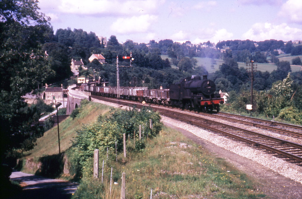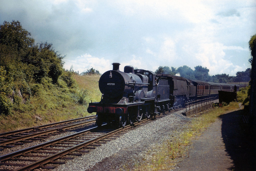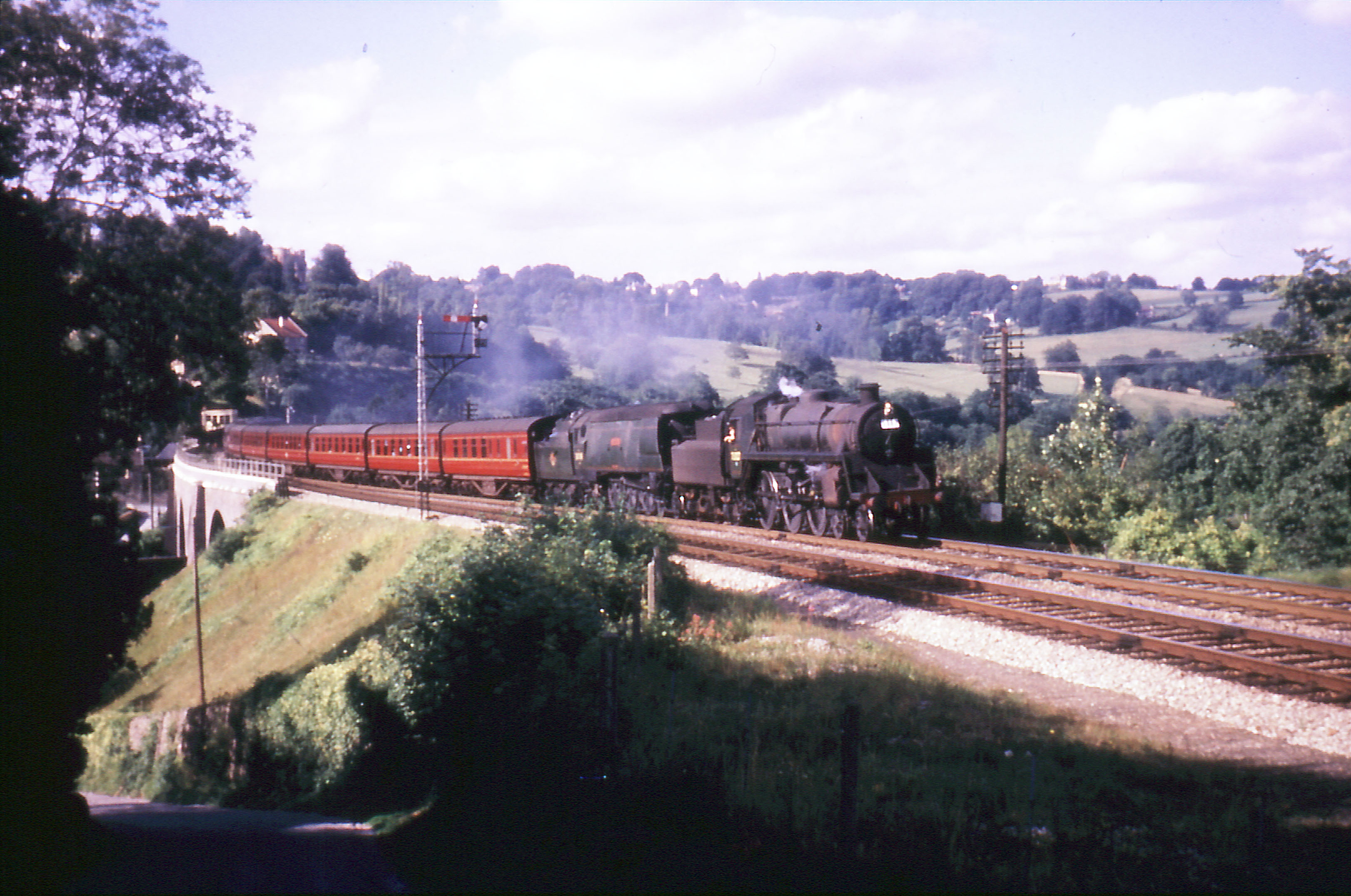 The S&D was famous for the remarkable locomotive combinations that could be seen, particularly on summer Saturdays when many additional holiday trains were run and locomotive resources were stretched. Here an unidentified northbound express approaches Midford behind ex LMS 2P 4-4-0 40700 piloting Bullied West Country Class 34041 Wilton in July 1961.