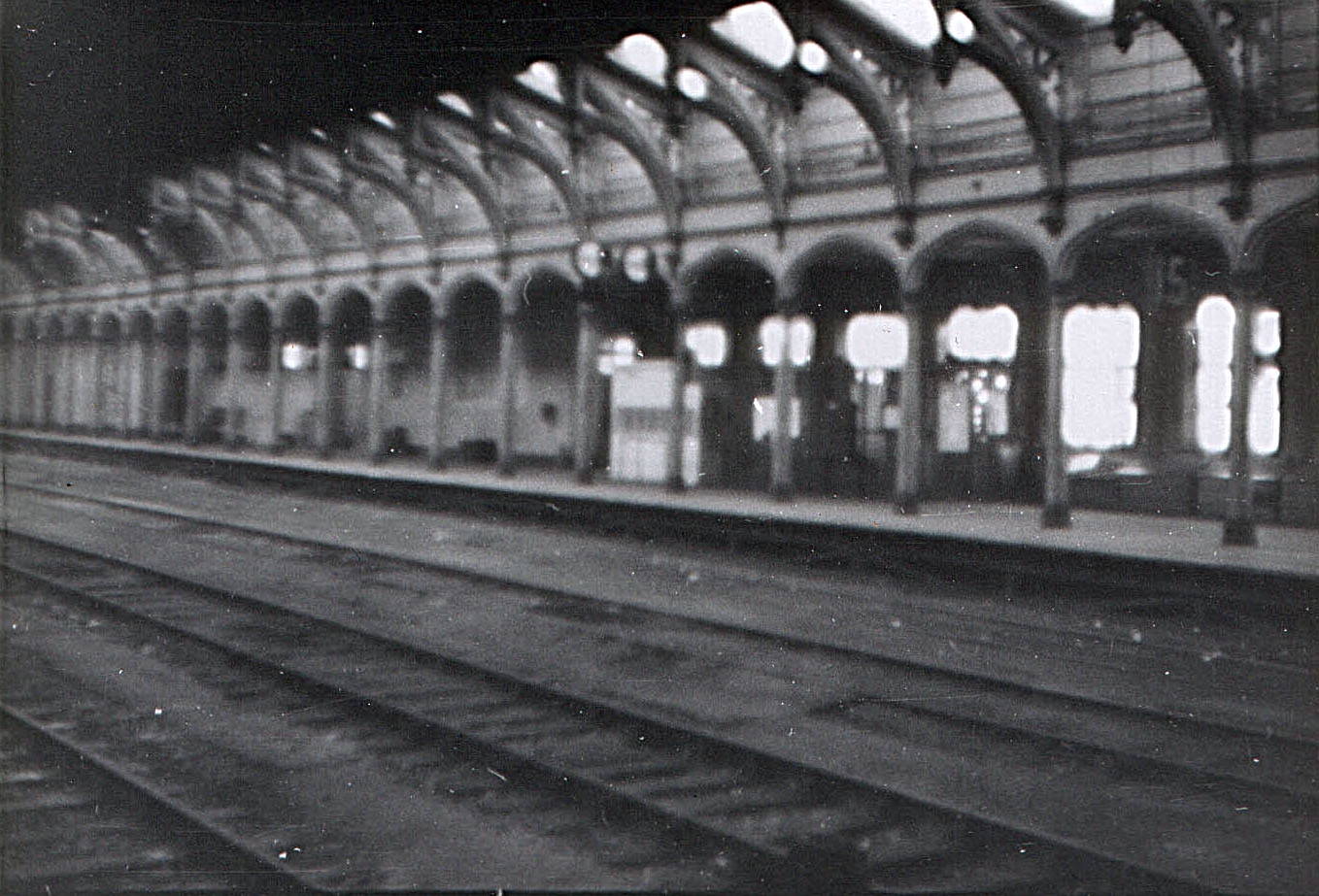 Looking in to Bristol Temple Meads Old Station. Platform 12 on the left, Platform 14 on the right.